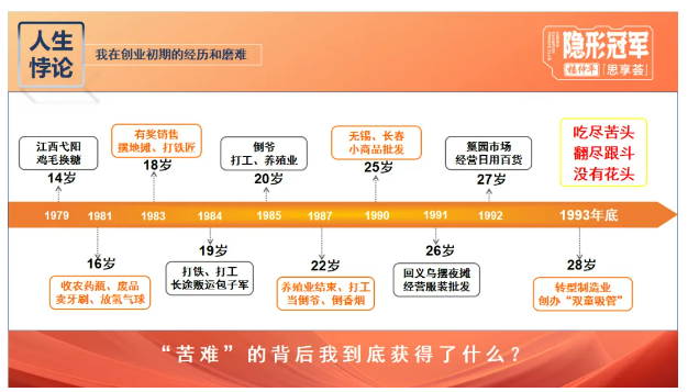 人類獲得的智慧均來源于他所經歷的“苦難”!這些跌宕起伏的經歷雖然沒有對他的物質生活帶來太大的改變,卻讓他意識到了自己的“渺小”,從好高騖遠、急于求成,轉為“極致專注”,同時也練就了“皮糙肉厚”的創(chuàng)業(yè)韌性。