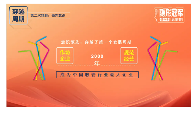 先后三次“開門”,“雙童”完成了從作坊企業(yè)到規(guī)范經營的蛻變,也奠定了成為全球最大吸管企業(yè)的基礎。通過意識領先,“雙童”這家企業(yè)穿越了第一個周期。