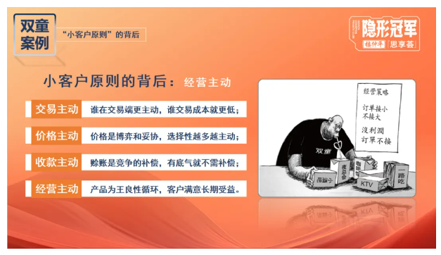 企業(yè)最終的目的不僅是活著,而是有品質、有尊嚴、有存在感的活著。因此,樓仲平展開了新一輪的“變革”。推行“小客戶原則”,主動跳出價格內卷,果斷放棄無利潤的大客戶,轉戰(zhàn)高質量的中小客戶,重新掌握話語權。
