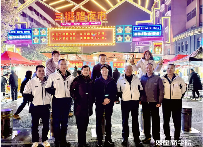 如果說義烏人憑借吃苦耐勞的精神,用“雞毛換糖”的方式催生了這座城市的商業(yè)萌芽,那么開放、包容、多元化則是這座小縣城能夠享譽世界的重要原因,所以當晚,樓仲平又帶領(lǐng)同學們來到了義烏賓王夜市,在這個充滿國際友人身影的場所,讓同學們對商業(yè)的魅力和義烏市場經(jīng)濟的活力有了更深刻的實感。