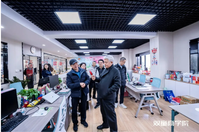 隨后便帶領(lǐng)張維迎教授及同學們走進雙童眾創(chuàng)空間,每走進一間辦公室,他就向大家介紹一個全新的、與吸管截然不同的業(yè)務:第五創(chuàng)業(yè)體的文化傳媒、第六創(chuàng)業(yè)體的可降解膜袋、第八創(chuàng)業(yè)體的文創(chuàng)產(chǎn)品、第十四創(chuàng)業(yè)體的財務咨詢等等。