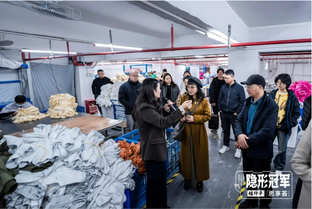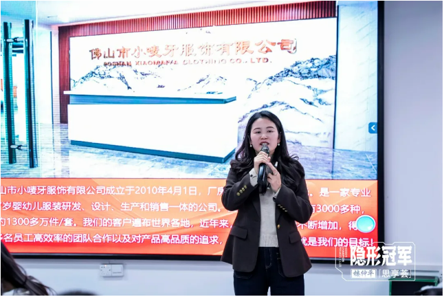 中國制造在廣東,廣東制造看佛山。因此,第二站校友們來到了思享薈三期學(xué)習(xí)委員黃新燕同學(xué)的企業(yè)——佛山市小嘜牙服飾有限公司。這家自2014年創(chuàng)立的企業(yè),專注于加工、制造、銷售:服飾、服裝、鞋、帽、襪、小飾物;貨物進出口,技術(shù)進出口等業(yè)務(wù)。在距離小嘜牙尚有數(shù)百米之遙的地方,校友們便遠(yuǎn)遠(yuǎn)地望見了黃新燕同學(xué)精心準(zhǔn)備的迎賓牌。而作為此次活動的東道主,小嘜牙團隊早已提前在幾百米開外的路邊引導(dǎo)歡迎,滿懷期待地等待著大家的到來。他們的熱情和周到,為這次相聚增添了一份特別的溫馨與隆重。踏入小嘜牙,校友們不僅親眼見證了童裝生產(chǎn)的全鏈條運營流程,還深入探討了小嘜牙在數(shù)智化轉(zhuǎn)型道路上的探索和實踐,特別是如何在海量款式面前,運用信息化系統(tǒng)實現(xiàn)數(shù)據(jù)的精準(zhǔn)管理。在參觀中,黃新燕同學(xué)告訴大家在公司經(jīng)營遇到困難時,她開始主動出來學(xué)習(xí)。2023年,她關(guān)注了樓老師一整年的視頻,今年1月參加了《自主制創(chuàng)業(yè)裂變營》學(xué)習(xí),8月份開始了《薪酬績效訓(xùn)練營》學(xué)習(xí),這兩個實戰(zhàn)類的課程,幫助她解決了很多的公司管理痛點。