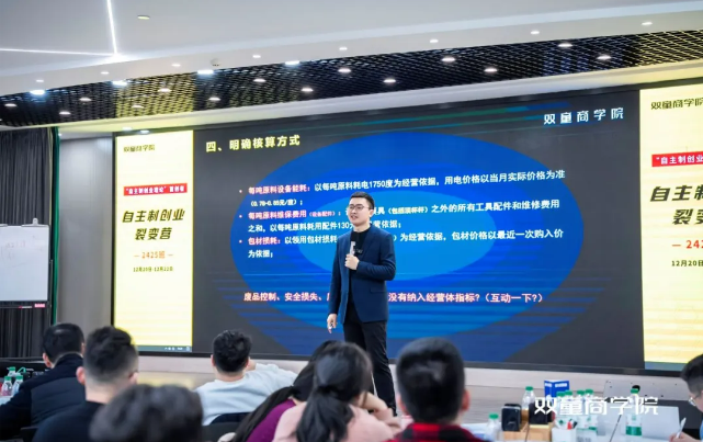 劉育良老師在第三天的落地實(shí)戰(zhàn)篇,則圍繞經(jīng)營(yíng)體方案怎么定?經(jīng)營(yíng)者怎么選?經(jīng)營(yíng)體和創(chuàng)業(yè)體落地保障這三個(gè)方面進(jìn)行交付。在課程交付中,劉老師穿插了大量案例進(jìn)行教學(xué),通過(guò)拆解裂變機(jī)制在制造業(yè)工廠、電商直播、連鎖企業(yè)、外貿(mào)公司等不同行業(yè)中的落地案例,提升學(xué)員舉一反三的能力!