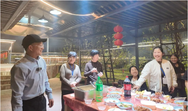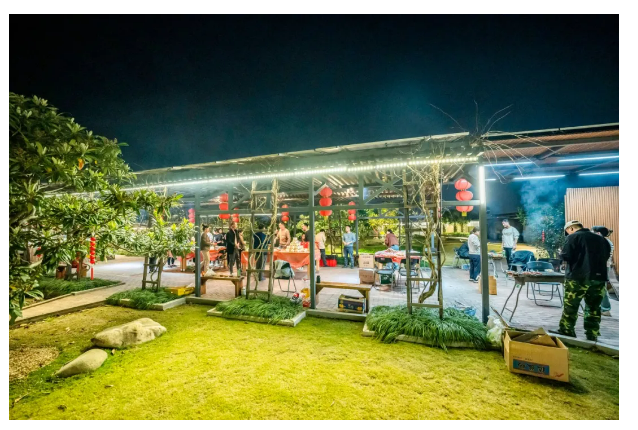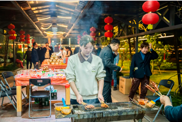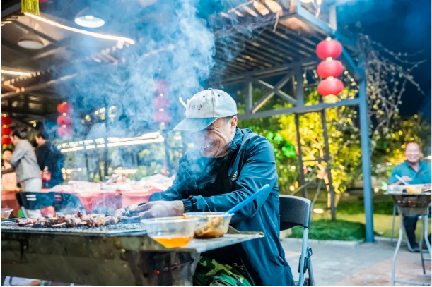 接下來,就輪到我們的燒烤師傅登場了!隨著肉串在火焰上漸漸變得金黃誘人,空氣中彌漫著令人垂涎的烤肉香。熊熊燃燒的火焰與大家高漲的熱情讓現(xiàn)場氣氛熱烈非凡,整個空中生態(tài)園都沉浸在這份歡樂和溫暖之中。