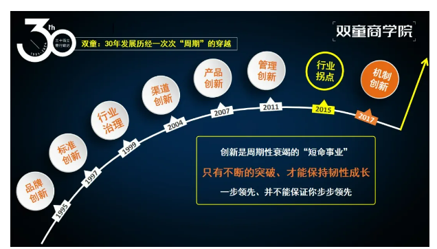 那么,“雙童”是如何能夠成功穿越一個(gè)個(gè)經(jīng)營(yíng)周期,并保持有生命力、有韌性的成長(zhǎng)的呢?一起看看創(chuàng)始人樓仲平在主題報(bào)告中怎么說(shuō)。