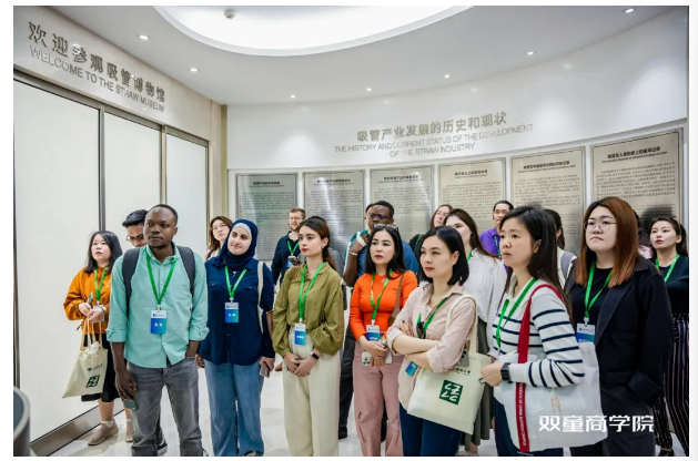 在中國吸管博物館,新漢學(xué)博士學(xué)術(shù)研習(xí)團(tuán)在講解員的引領(lǐng)下,深入了解了小小吸管背后的產(chǎn)業(yè)發(fā)展變遷,以及雙童是如何推動(dòng)吸管產(chǎn)業(yè)綠色發(fā)展的。