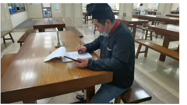 食堂師傅正在對(duì)驗(yàn)收回來(lái)的菜品進(jìn)行登記