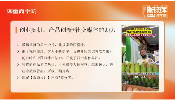 雷鋒老師告訴同學們,截至目前,“雷鋒果汁”已成功開設了七家分店,且其業(yè)務持續(xù)繁榮的背后,主要得益于四大核心推動因素: