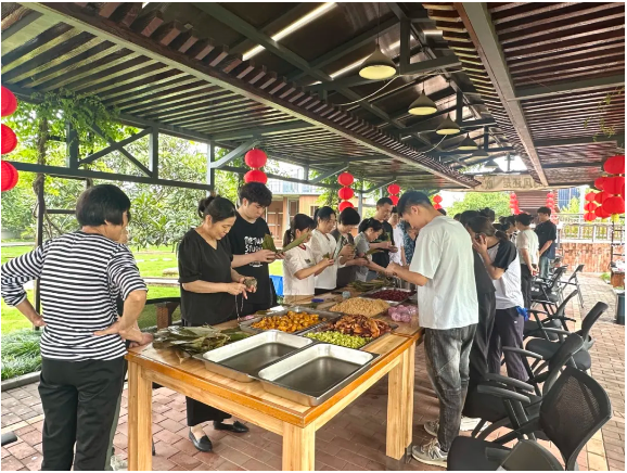 今年后勤部門也是早早地為大家準(zhǔn)備好了各種粽子餡料,肥糯五花肉、寓意高中的狀元豆… 統(tǒng)統(tǒng)安排上啦!滿足五湖四海的雙童人口味,全都真材實(shí)料看得見(jiàn)!