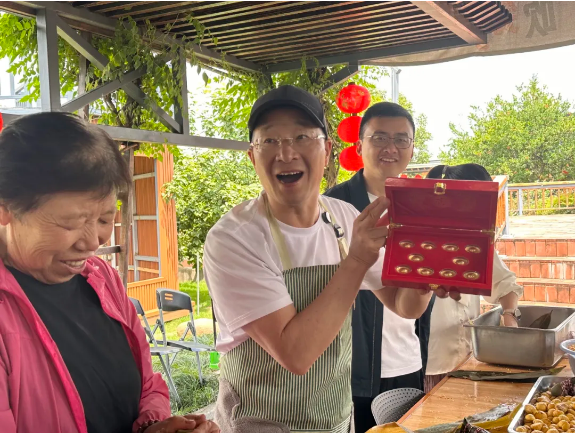 正好也到飯點(diǎn)了,大家也絲毫不拘謹(jǐn),大口大口吃著粽子,不到一分鐘的時(shí)間,現(xiàn)場(chǎng)幾乎同時(shí)出現(xiàn)了好幾個(gè)吃到黃金粽的幸運(yùn)星!