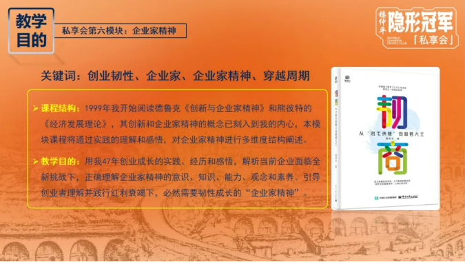除了讓同學們了解將課程設置在“辛莊課堂”的緣由,在《辛莊課堂與企業(yè)家精神》課程中,樓老師用他47年創(chuàng)業(yè)成長的實踐、經(jīng)歷和感悟,對企業(yè)家精神進行多維度結(jié)構(gòu)闡述,讓同學們能正確理解企業(yè)家精神的意識、知識、能力、觀念和素養(yǎng),進而引導“弟子班”的每位學員都能重視并踐行“企業(yè)家精神”,時刻提醒自己保持“企業(yè)家”狀態(tài),以助力企業(yè)在紅利衰竭的環(huán)境下,保持韌性成長!