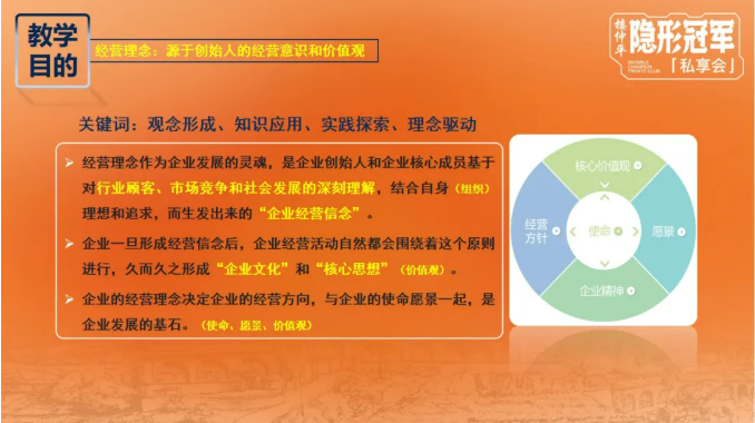 在《經(jīng)營理念與企業(yè)成長》課程交付中,樓老師特別選用他個人的持續(xù)成長和雙童的發(fā)展作為教學案例,通過剖析他個人的思維認知轉(zhuǎn)變?nèi)绾悟?qū)動雙童經(jīng)營理念的轉(zhuǎn)變,以及帶領(lǐng)企業(yè)一次次穿越周期、韌性成長的故事,讓同學們更直觀地認識到:創(chuàng)始人的經(jīng)營意識和價值觀是企業(yè)經(jīng)營理念最直接來源。而經(jīng)營理念是企業(yè)發(fā)展的靈魂,決定著企業(yè)的經(jīng)營方向。