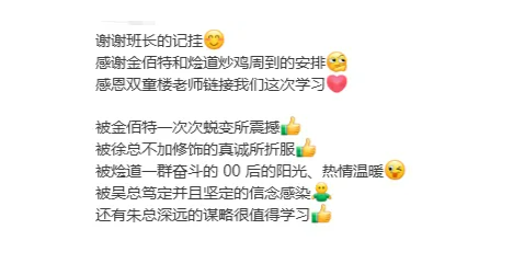 從燴道辦公區(qū)域墻壁上的核心價值觀,到生產(chǎn)一線精準執(zhí)行的管理細則,大家直觀感受到了“以奮斗者為本”的理念如何滲透到企業(yè)肌理、融入日常運營;通過觀摩一線車間的操作與管理流程,研學(xué)標準化在提高生產(chǎn)效率、保障產(chǎn)品品質(zhì)中的重要作用。