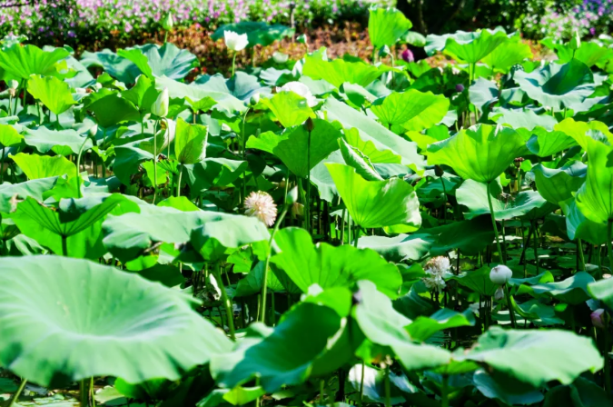 不同形態(tài)的荷花搖曳在碧波中