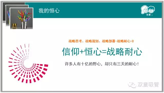 其次在分享過程中當(dāng)家人樓總也談到:做企業(yè),要善于把自己的行業(yè)細(xì)分再細(xì)分,然后在這個細(xì)分的行業(yè)里做到NO.1。在這個過程中,要把自己看小,才能把舞臺做大!