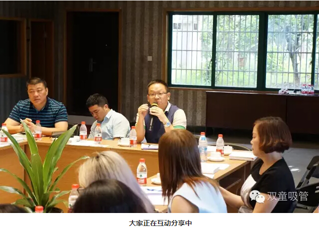 剛到雙童,大家就來到九樓閣進(jìn)行交流分享,二當(dāng)家李二橋圍繞雙童的發(fā)展歷程和經(jīng)營理念進(jìn)行分享,在聽了雙童的發(fā)展歷程后,大家紛紛敬佩雙童”22年專注一根吸管的精神。