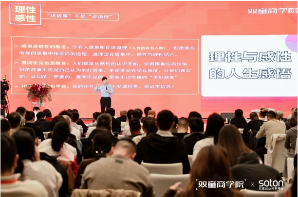 他告訴學員們,企業(yè)家應將專業(yè)認知與人格魅力,轉(zhuǎn)化為對受眾有實際價值的內(nèi)容,從而建立信任紐帶,最終實現(xiàn)個人影響力與企業(yè)品牌價值的共生共長。