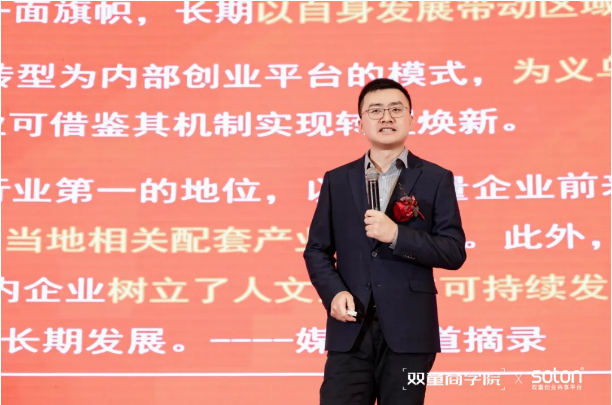 與此同時,雙童正式宣布商學院進行品牌升級,由“雙童商學院”更名為“雙童商學”。這一字之變,意味著:“雙童商學院”從義烏工商職業(yè)技術學院的二級分院升級為一個更開放、更獨立的教育品牌,從提供一套課程體系,升級為構(gòu)筑一個共生共長的商業(yè)智慧生態(tài)系統(tǒng)。