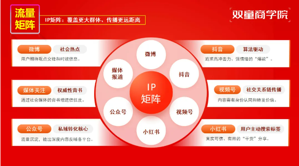 如今,雙童已構(gòu)建起覆蓋微博、抖音、視頻號(hào)、小紅書等多平臺(tái)的IP矩陣,各平臺(tái)定位清晰、優(yōu)勢(shì)互補(bǔ):抖音追求高沖擊力爆款,視頻號(hào)依托社交關(guān)系鏈傳播,小紅書側(cè)重干貨分享,公眾號(hào)沉淀私域流量,主流媒體提供權(quán)威背書,形成了覆蓋廣泛群體、傳播距離深遠(yuǎn)的傳播網(wǎng)絡(luò)。