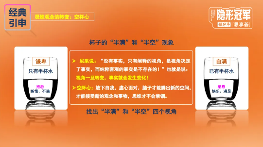 科學革命的起點,是承認人類的無知。而創(chuàng)新思維的開啟,首要前提是思維觀念的轉(zhuǎn)變,擁有“空杯心”。面對事物,人們常陷入“半滿”與“半空”的認知局限,而“空杯心”的核心的是放下自我固有認知與偏見,以虛心的態(tài)度面對新事物,唯有讓大腦騰出空間,才能接納新觀念、突破思維禁錮。