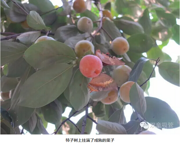 在“雙童”,一年四季都有水果吃呢!到了秋天更是豐收的季節(jié),這不,最近“雙童”的幾棵柿子樹成熟了,就等著吃貨們采摘嘗鮮呢!