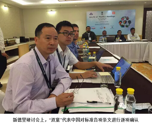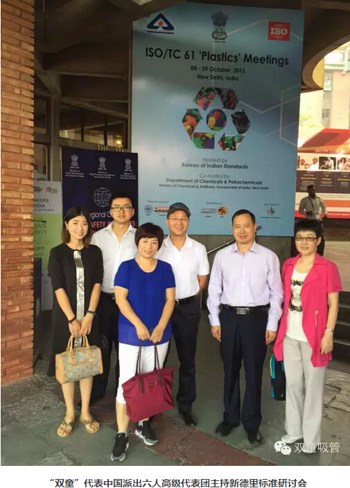 2015106日,ISO TC61國際標(biāo)準(zhǔn)化組織年會在印度新德里召開,作為最后一次國際標(biāo)準(zhǔn)起草工作的定稿工作,雙童代表中國派出了強(qiáng)大的六人技術(shù)代表團(tuán)。經(jīng)過幾天緊張的討論,雙童會同各參與主席國對《聚丙烯飲用吸管規(guī)范》送審稿的各項條文進(jìn)行最終的程序性確認(rèn),在參與各國代表一致同意下形成了《聚丙烯飲用吸管規(guī)范》ISO國際標(biāo)準(zhǔn)報批稿,提交給瑞士日內(nèi)瓦的ISO國際標(biāo)準(zhǔn)化組織最終審定。