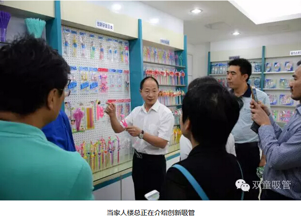 來(lái)者皆是客,當(dāng)家人樓總自然是熱情接待。一行人先是來(lái)到了樣品房。一進(jìn)樣品房,大家就被琳瑯滿目的各類吸管所吸引,尤其是各類功能情趣的創(chuàng)新吸管,更是讓每個(gè)人都嘖嘖稱奇,贊嘆“雙童”的創(chuàng)新力之強(qiáng)!