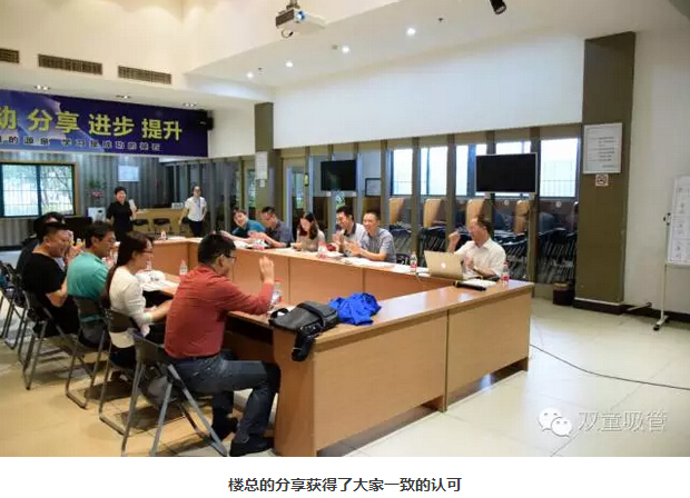 參觀后,大家終于有機(jī)會(huì)坐下來(lái)分享交流。首先,當(dāng)家人樓總和大家分享了《隱形冠軍背后的“匠人”思維》課程的部分內(nèi)容,講到了“雙童”倡導(dǎo)的“匠人之心”——“初心”、“恒心”、“平常心”。只有初心存正,企業(yè)的目標(biāo)才會(huì)自然而至。一生做好一件事就很了不起了。”