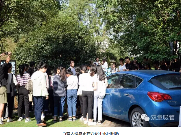 一進(jìn)門,學(xué)生們就提出要好好逛逛我們的花園式工廠。這不,當(dāng)家人樓總立即帶大家看起了我們的節(jié)能降耗設(shè)施。當(dāng)家人向?qū)W生們詳盡地講述了我們的中水回用系統(tǒng)、雨水收集系統(tǒng)、垃圾分類系統(tǒng)等各個(gè)設(shè)施的運(yùn)行原理,同學(xué)們對這樣生態(tài)環(huán)保的做法都贊不絕口呢!