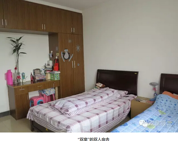 而當(dāng)大家來到最期待的員工寢室時(shí),同學(xué)們的反應(yīng)也是在吸管妞的意料之中。每個(gè)房間都配有干凈整潔的洗手間、寬敞明亮的洗衣陽臺,并配有各種家具,每個(gè)房間安裝有空調(diào),24小時(shí)供應(yīng)熱水洗澡和純凈飲用系統(tǒng)。驚羨之聲隨處可聽。當(dāng)吸管妞和同學(xué)們說,我們寢室的衛(wèi)生工作都是由清潔阿姨打掃的,連垃圾桶都不用倒!他們紛紛自薦:我要來“雙童”實(shí)習(xí)!