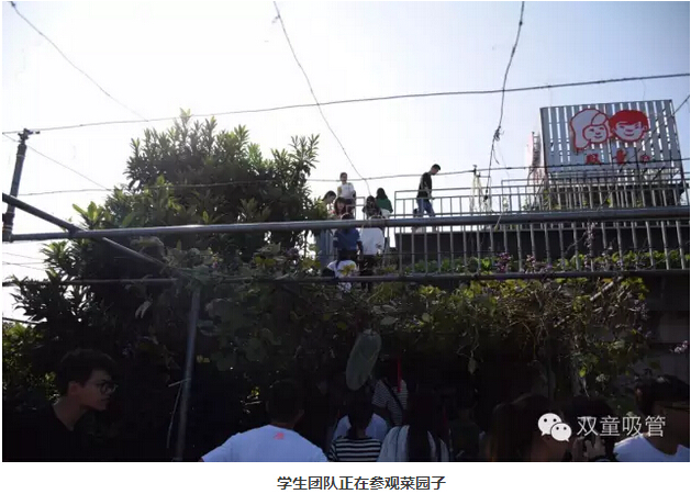 最后,當(dāng)然要帶大家到我們的菜園子逛逛啦!在聽到“雙童”的屋頂菜園有700多平方米,所有的種植區(qū)都是一米二厚的土層,種蔬菜的有機(jī)肥,都是“雙童”的“生物垃圾處理池”里的生物垃圾發(fā)酵而成時(shí),同學(xué)們都贊嘆不已!