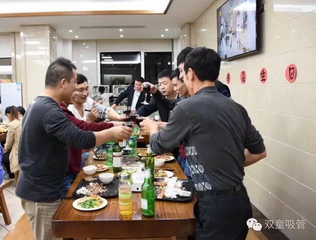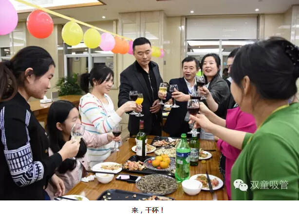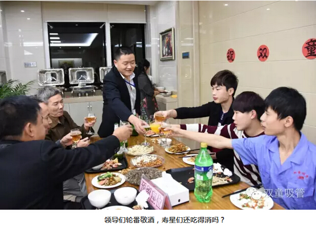 吃喝,吃喝,光吃不行還得喝!“酒水飲料”自然是調(diào)節(jié)氣氛的最佳,五星級食堂舉辦的第一次生日會,自然要幾位“五星級的領(lǐng)導”陪同!你看啊,各個車間的主要領(lǐng)導都來了??!他們的宗旨就是:一定要讓壽星們不光吃的好,還要喝的盡興!領(lǐng)導們端著酒杯笑嘻嘻的對每位壽星說:“沒事,喝嘛,喝醉了明天啥時候起來,啥時候上班!” 壽星們,你們還不趕緊放開了量,爭取也灌倒一兩位領(lǐng)導啊?。?!