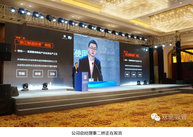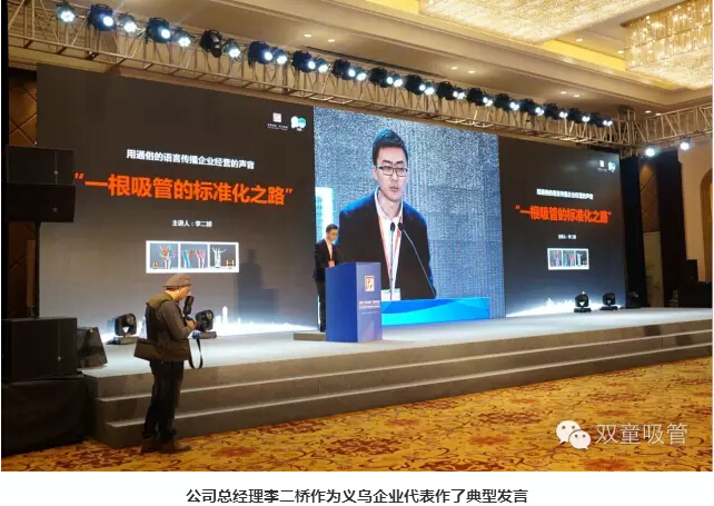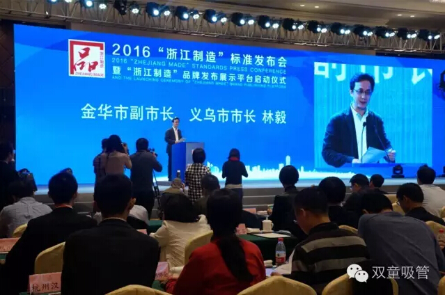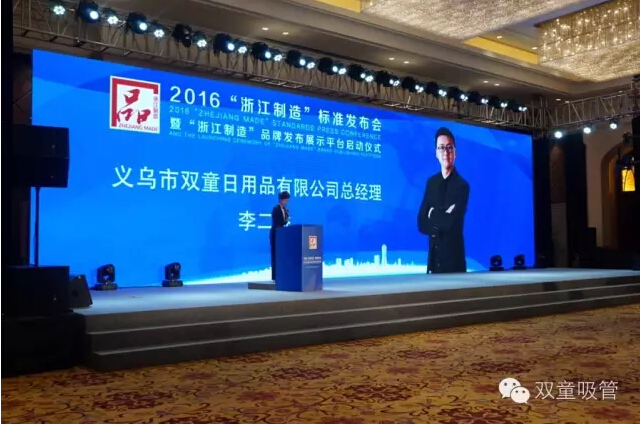 11月18日,2016“浙江制造”標(biāo)準(zhǔn)發(fā)布會暨“浙江制造”品牌發(fā)布展示平臺啟動儀式在義烏舉行,省副秘書長陸建強(qiáng)、省標(biāo)準(zhǔn)委員會、質(zhì)量監(jiān)督局的相關(guān)領(lǐng)導(dǎo)及義烏市委市政府的盛秋平書記、林毅市長等主要領(lǐng)導(dǎo)都出席了本次儀式。義烏首個“浙江制造”標(biāo)準(zhǔn)研制企業(yè)雙童吸管派出了總經(jīng)理李二橋作為代表作了典型發(fā)言!