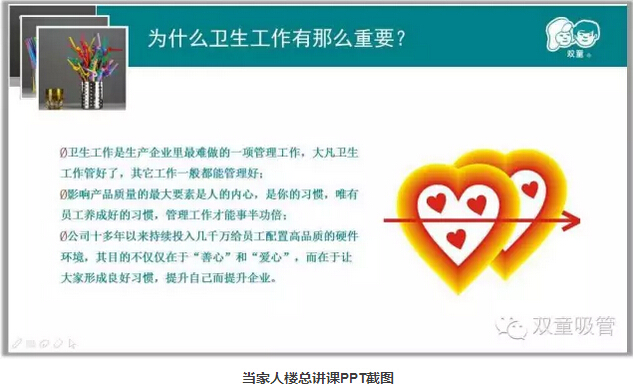 “雙童是我們共同的家園,最后當(dāng)家人樓總也呼吁大家共同維護(hù)家園的衛(wèi)生,共同建設(shè)更加美好的雙童。讓我們從細(xì)節(jié)入手,在提升中保持素養(yǎng)的持續(xù)提升,讓我們雙童的員工都成為義烏的驕傲!