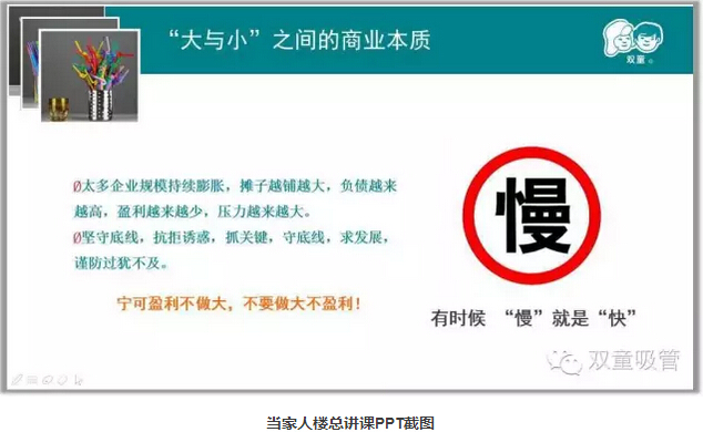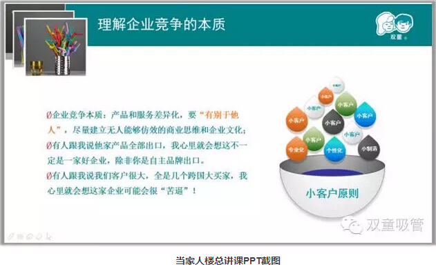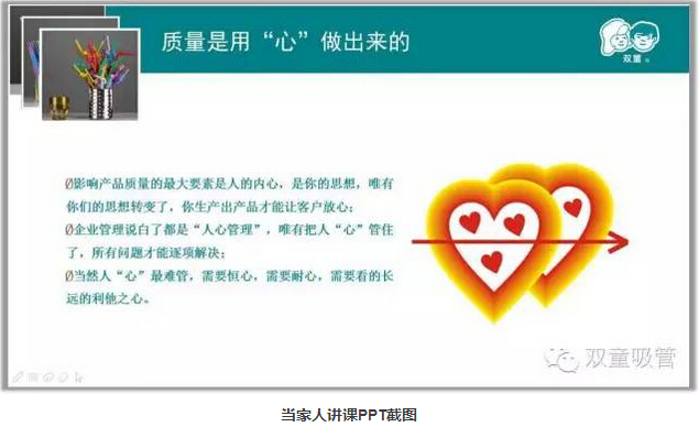 首先,當(dāng)家人樓總分享了自己30多年的創(chuàng)業(yè)經(jīng)歷,在不斷失敗的教訓(xùn)中,他選擇了把一根吸管做精、做細(xì)!通過(guò)二十多年積累,雙童初步形成了專注經(jīng)營(yíng)、創(chuàng)新進(jìn)取、綠色低碳、和諧共贏和精細(xì)化管理的發(fā)展理念,雙童也發(fā)展的越來(lái)越好!而這些都離不開(kāi)匠心。社會(huì)發(fā)展也是如此,逐漸回歸匠心,回歸商業(yè)本質(zhì)!