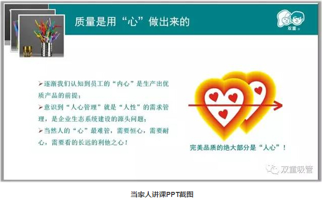 第一章,當(dāng)家人樓總分享了自己30多年的創(chuàng)業(yè)經(jīng)歷,在不斷失敗的教訓(xùn)中,他選擇沉下心來(lái)專注做好一根吸管!“雙童”的發(fā)展離不開(kāi)“匠人”的回歸,從本質(zhì)上來(lái)講“匠人”不只是為他人著想,更不是大公無(wú)私,而是基于理性、立足客觀、看的長(zhǎng)遠(yuǎn),以利他之心追求自我價(jià)值的最終實(shí)現(xiàn)。
