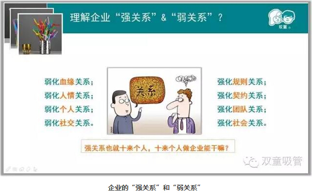 最后,當(dāng)家人和大家分享了“匠人思維”背后的商業(yè)本質(zhì)。首先是“關(guān)系”的本質(zhì),做企業(yè)應(yīng)該弱化個(gè)人關(guān)系,強(qiáng)化企業(yè)關(guān)系!畢竟一個(gè)人的能力是有限的,他能發(fā)展的強(qiáng)關(guān)系范圍也就只有十來(lái)個(gè)人,在企業(yè)經(jīng)營(yíng)中,十多個(gè)人的作用并不大!真正把企業(yè)做好了,一切關(guān)系才會(huì)好!