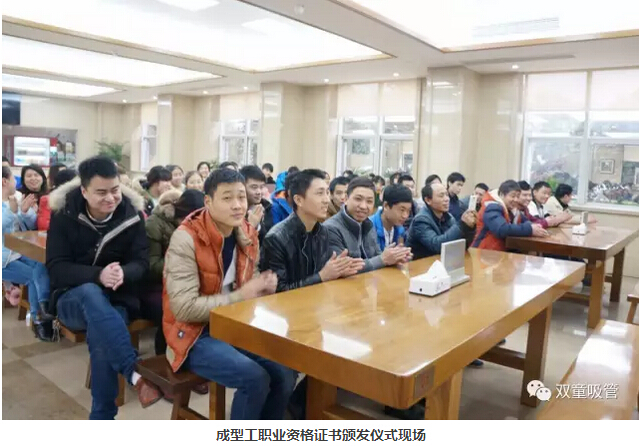 重磅好消息!近日,“雙童”收到了近百位員工們考取的吸管成型工職業(yè)資格證書!這不,今天我們在員工餐廳舉辦了成型工職業(yè)資格證書頒發(fā)儀式!瞧!員工們一個個喜笑顏開的樣子,真讓人高興呀!
