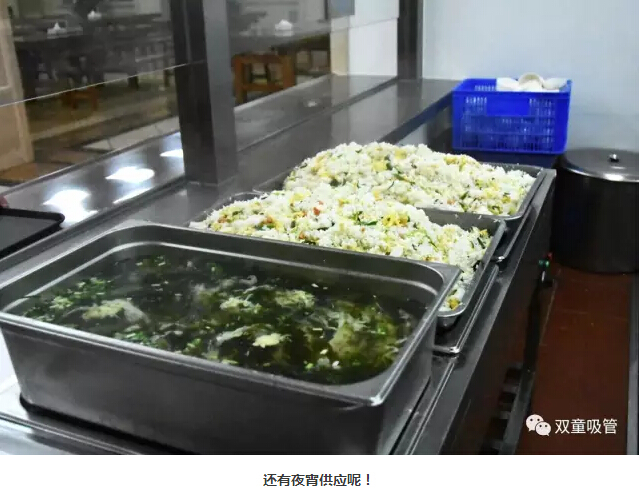 別急別急!除了一日三餐之外,我們還提供夜宵呢!蛋炒飯、紫菜雞蛋湯、面條……這么晚了還有營養(yǎng)的夜宵供應(yīng),員工們進(jìn)了“雙童”可得胖三斤呀!