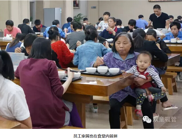 除了給員工提供餐飲之外,“雙童”也鼓勵員工的家人一起在餐廳就餐,員工家屬在食堂就餐收取一半成本費(fèi)用,盡量解決員工在工作之余不再忙于家務(wù)!