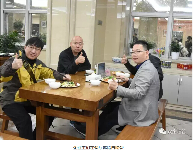 第二站是五星級員工餐廳,吸管妞也介紹道:“餐廳內(nèi)的設(shè)施都配備了最好的硬件,加飯餐車也是由樓總親自設(shè)計的,就是為了讓員工們都能吃到熱乎乎的飯!另外員工的餐飲都是三菜一湯的標(biāo)配,員工們使用后的所有碗筷都由食堂阿姨進(jìn)行清洗和消毒。”大家在看到如此精細(xì)的就餐環(huán)境和硬件后都十分欣慰,紛紛贊嘆:“員工們能在這么好的環(huán)境里就餐真幸福!”