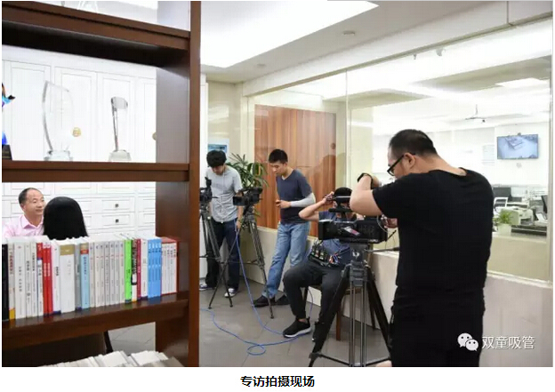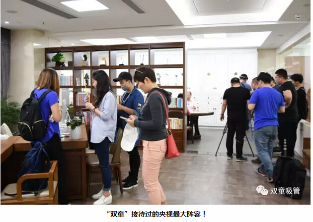 看看現(xiàn)場拍攝照片,二十多名拍攝記者、五臺攝像機分兩路行動,一路在辦公室做采訪對話,一路徑直前往車間拍攝生產(chǎn)畫面。連當家人樓總都不禁感嘆:這可真是“雙童”接待過的央視最大陣容!