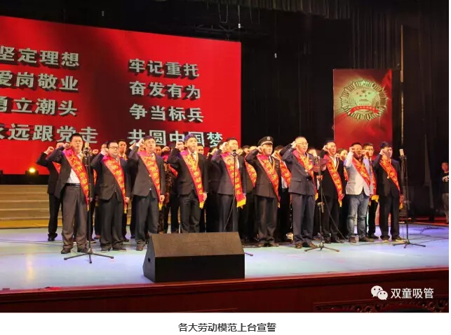在激動人心的頒獎環(huán)節(jié)之后,所有的勞動模范也一起上臺宣誓,錚錚誓言,道出了每名勞模的心聲,激勵著每名勞模和廣大職工奮勇前進!