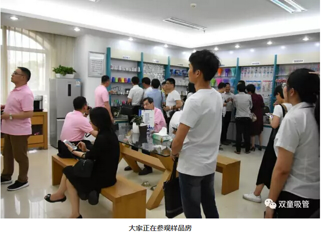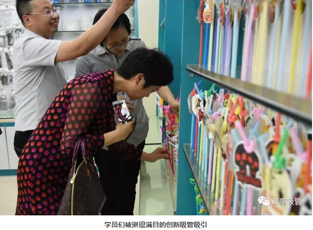 移步樣品房,大家都被琳瑯滿目的各類吸管所吸引,尤其是各類功能情趣的創(chuàng)新吸管,它顛覆了大家腦海里幾分幾厘的普通吸管,而是轉(zhuǎn)變?yōu)閹讐K錢一支的高端產(chǎn)品,更是讓每個(gè)人都嘖嘖稱奇,贊嘆雙童的創(chuàng)新力之強(qiáng)!