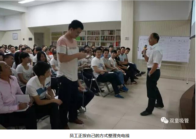 在學(xué)習(xí)會開場前,“雙童”樓仲平現(xiàn)場邀請了員工整理蘋果電腦充電線,結(jié)果員工認真的繞了好幾次也沒達標。原來,整理充電線雖然沒有什么技術(shù)含量,但單憑細節(jié)來說,我們隨手整理的往往容易散亂開來,而按照標準流程進行操作整理,關(guān)注到每一個細節(jié)時,充電線就不會散!這個小互動也引導(dǎo)員工們認知到無論做什么事情都應(yīng)該關(guān)注細節(jié),認知細節(jié)的重要性!