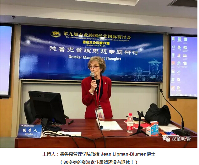 論壇正式開始,現(xiàn)場(chǎng)來了很多著名的國外學(xué)者,有英文同聲翻譯對(duì)分享者的課程進(jìn)行翻譯,大家圍繞德魯克管理思想進(jìn)行專題探討!此次論壇的主持人是來自美國彼得?德魯克管理學(xué)院教授Jean Lipman-Blumen博士,80高齡的她特地從美國來到中國參加此次跨國經(jīng)營國際論壇!