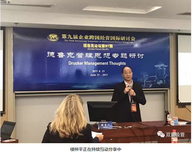 621日,樓仲平受邀參加由南京大學(xué)商學(xué)院主辦的跨國經(jīng)營國際論壇——德魯克管理思想專題研討,和南京大學(xué)商學(xué)院名譽(yù)院長趙曙明教授、美國德魯克管理學(xué)院校友關(guān)系助理主任 Shaheen PLUNIER女士同臺(tái)做主題分享!