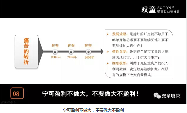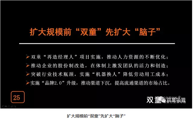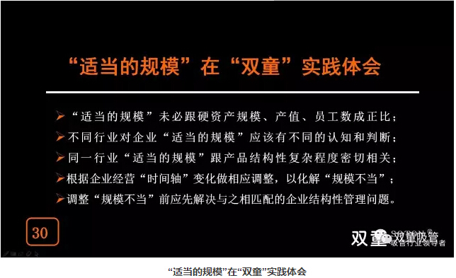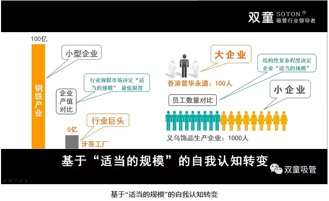 “適當(dāng)?shù)囊?guī)模未必跟硬資產(chǎn)規(guī)模、產(chǎn)值、員工數(shù)成正比,不同行業(yè)對(duì)企業(yè)適當(dāng)?shù)囊?guī)模應(yīng)該有不同的認(rèn)知和判斷,根據(jù)企業(yè)經(jīng)營時(shí)間軸變化做相應(yīng)調(diào)整來改變雙童未來在行業(yè)當(dāng)中的地位!