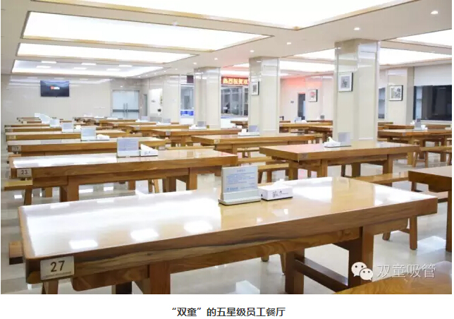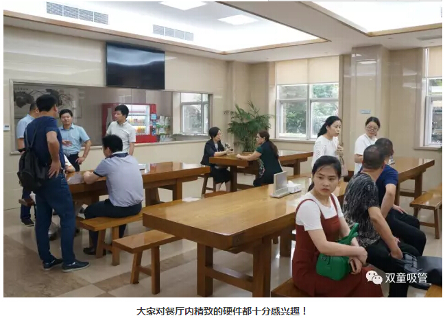 來(lái)到員工餐廳時(shí),大家都被餐廳內(nèi)精致的硬件吸引,吸管妞也介紹道:“員工吃飯的地方要配備最好的硬件,餐廳內(nèi)的每一張桌子都是由木中之王的柚木定制而成,每一張就要1萬(wàn)多元!