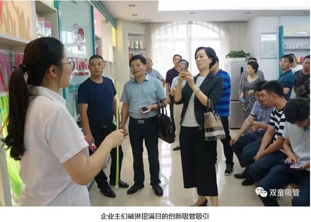 移步樣品房,大家都被琳瑯滿目的各類吸管所吸引,尤其是各類功能情趣的創(chuàng)新吸管,它顛覆了大家腦海里幾分幾厘的普通吸管,而是轉(zhuǎn)變?yōu)閹讐K錢一支的高端產(chǎn)品,更是讓每個(gè)人都嘖嘖稱奇,贊嘆“雙童”的創(chuàng)新力之強(qiáng)!